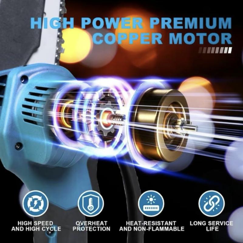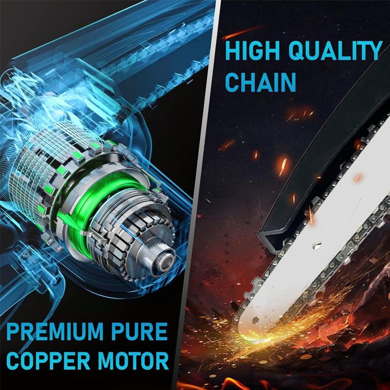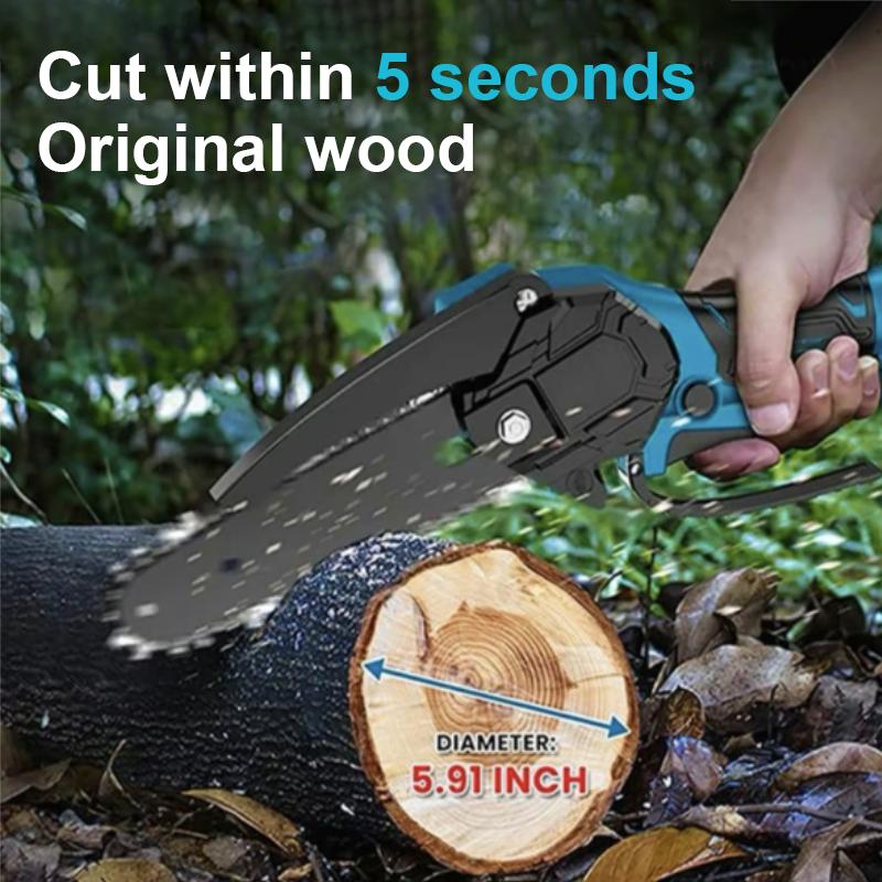 【Powerful & Efficient Cutting】Equipped with an 120W brushless motor, this mini chainsaw cordless delivers superior cutting efficiency for branches up to 6" thick. Optimized energy consumption ensures maximum power output while minimizing battery drain.